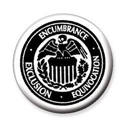 (without any funding,) designed a FREEE pinback button: ENCUMBRANCE
